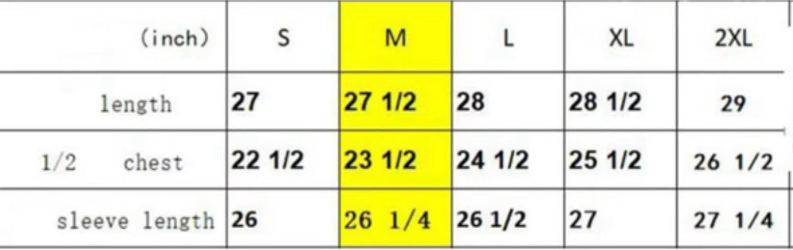 SIZE CHART ON LAST SLIDE